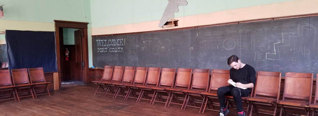 Port Costa’s historic 1911 Schoolhouse is lovingly preserved and maintained by the Port Costa Conservation Society as a community space. The building has plenty of interesting nooks, passageways and rooms where you can set up yourself and your project. The main rooms are: